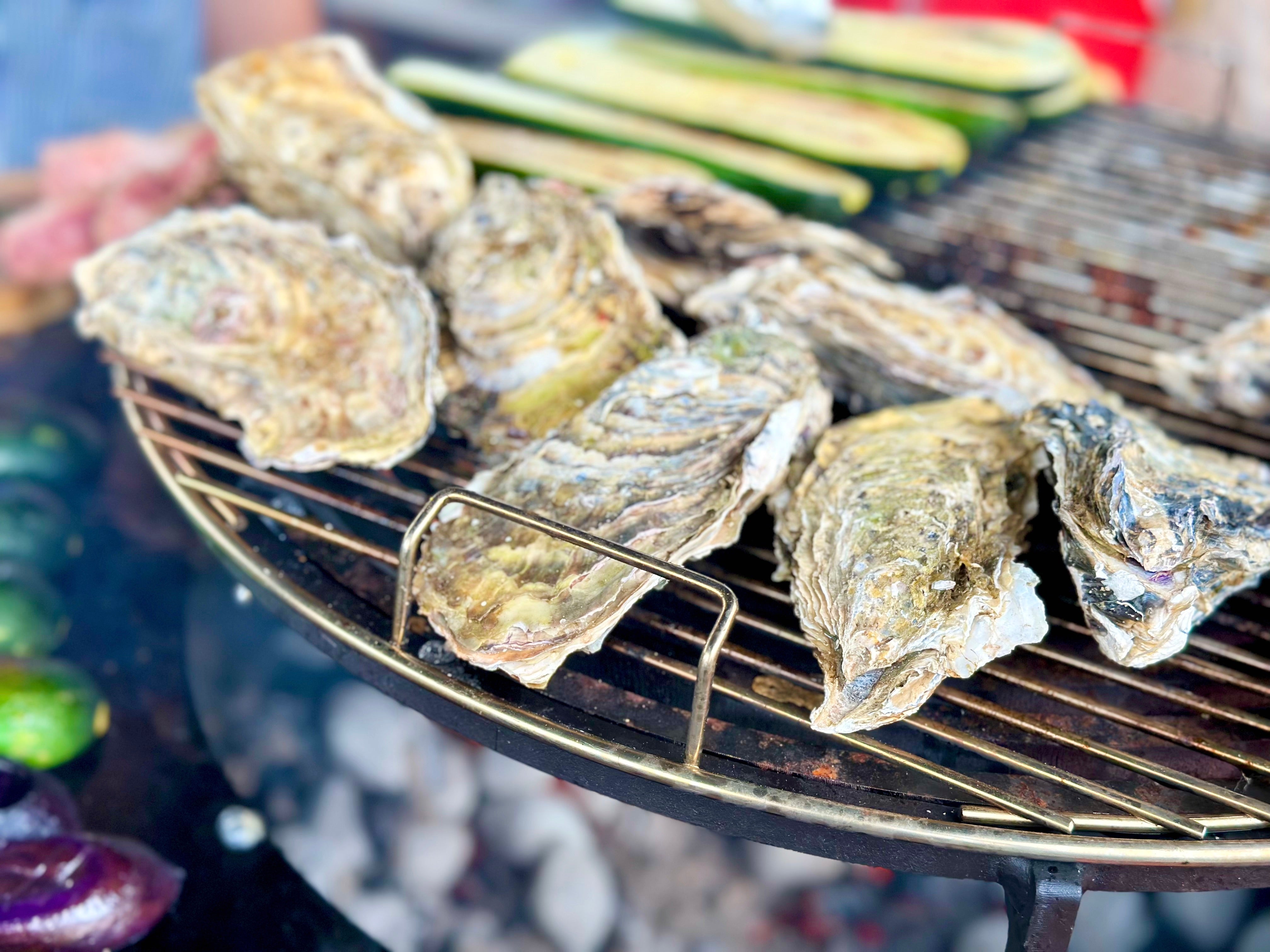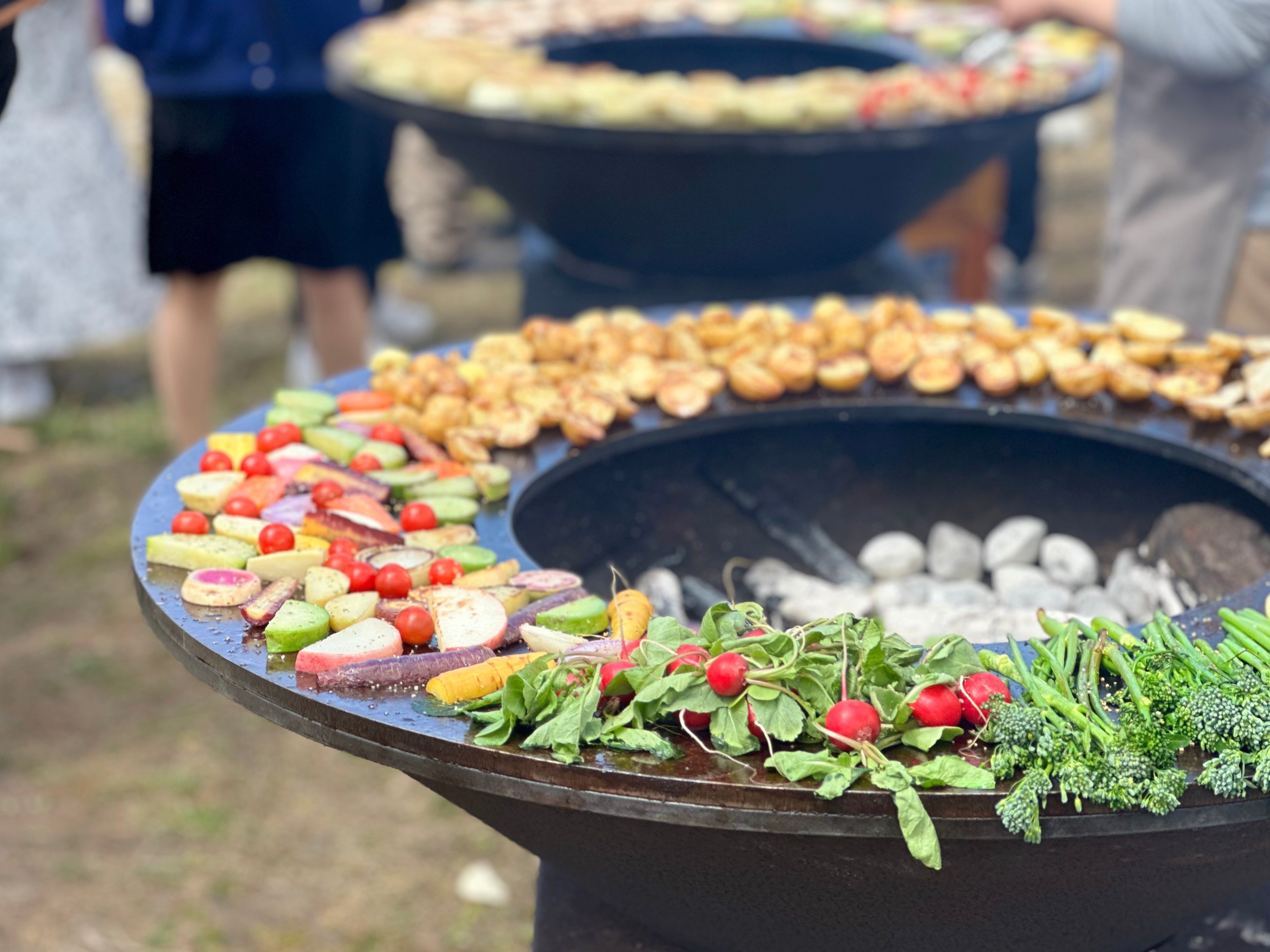 アウトドアグリルメーカーの本格的な直火グリル「OFYR(オフィア)」がダイナミックに食材を焼き上げます。